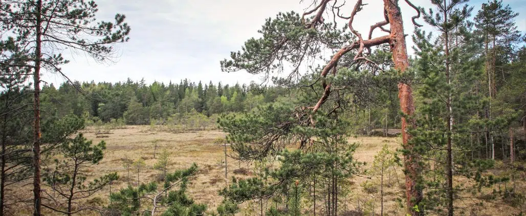 Polku vie kalliokumpare kerrallaan kohti Gillermossarnaa ja pian avautuu puuton suoalue oikealla. Joidenkin mielestä tämä maisema on kuin Lapista. No siellä muistaakseni vähän isommassa mittakaavassa, mutta kiehtova on tämäkin. Suonreunan kallioilla sinnittelevät männynkäppyrät ja kääpiä pursuavat koivut jatkavat elämäänsä 50, 100 tai 200 vuotta, kunnes lahottajat saavat yliotteen. Kalliokumpareet ovat kuin luotu eväspaikoiksi, on istuinkiviä, kallionreunoja ja avaruutta silmän levätä lähimaisemassa.