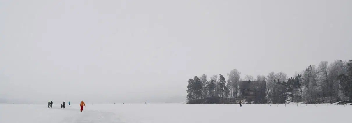 Järvellä vilisi jos jonkinmoista menijää. Retkiluisteluradalla kulki ystäväporukoita, pariskuntia, perheitä, vanhempia lastenrattaiden kanssa, isovanhempia kannustamassa pieniä luistelijoita ja suhahtipa ohi jokunen pyöräilijäkin. Hiihtäjät ja potkukelkkailijat taas nauttivat jään tuomasta vapaudesta hangen puolella, koirat juoksivat sydämensä kyllyydestä ja siellä täällä istui yksinäinen köyryselkäinen hahmo pilkkiavannon äärellä. Siinä kaikessa oli sellaista hauskaa vanhan ajan tunnelmaa, kun koko kylä tuntui juuri sinä päivänä kerääntyneen järvelle.