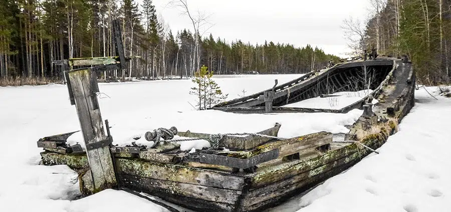 Netistä olin löytänyt tietoa lähistöllä makaavasta lotjasta. Se löytyikin ihan vastapäätä retkisatamaa Juminsaaren takana olevan pienen saaren rannasta. Kuvituksia lotjasta myös toisaalla: Vanha, mennyt ja entinen VI.