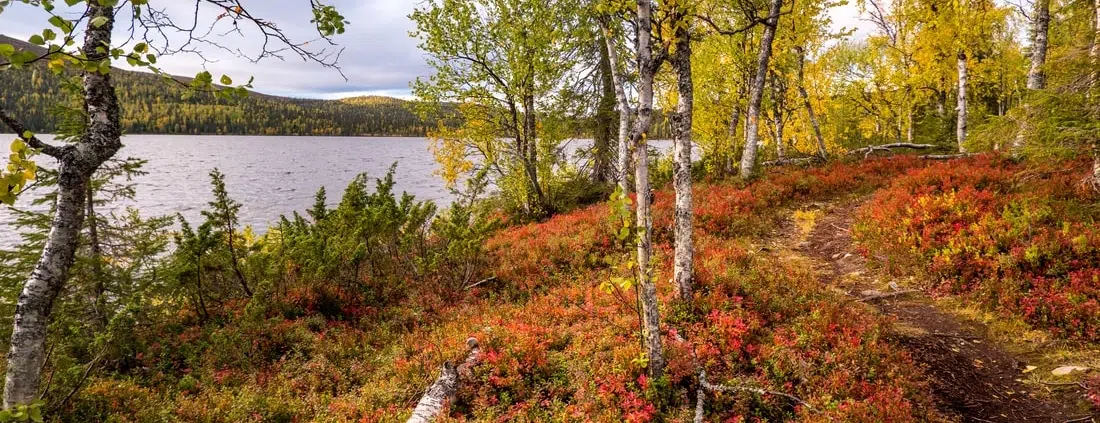 Reitti alkoi hämmästyttävän hyvänä sorareittinä, sorastus vaikutti melko tuoreelta. Vaivaiskoivikko liekehti ruskan väreissä, ja mieli oli korkealla. Panin merkille, että tälle reitille voisi tuoda vähän huonojalkaisemmankin ihmisen nauttimaan Lapin lumosta.