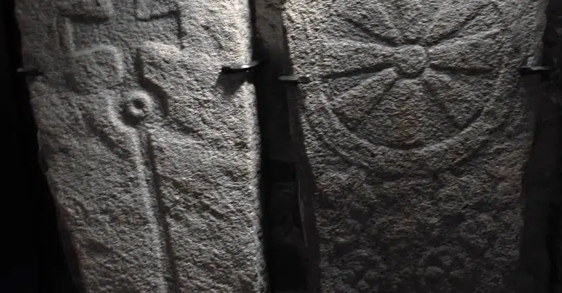 Vasemmanpuoleisessa kivessä puolestaan on selvä kristillinen tunnus, ristipäisen sauvan kuva.