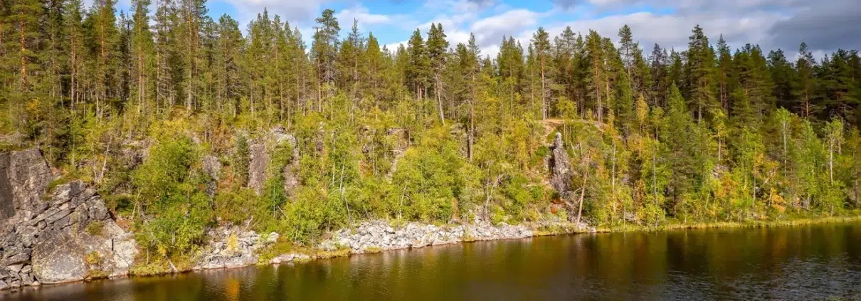 Nousimme kosken vieressä olleelle kalliolle ja pidimme siellä evästauon. Samalla oli aika tarkentaa seuraavia suunnitelmia. Suuntaisimme tiheän metsän halki hiekkatielle, jonka sillalta pääsisimme veden toiselle puolelle helposti ja turvallisesti. Sillan jälkeen suuntaisimme taas maastoon kohti seidan vastapäätä kohoavia kallioita.