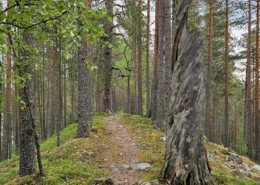 Ritojärven kierto Lieksassa: kelopuita ja kärryvajoja.