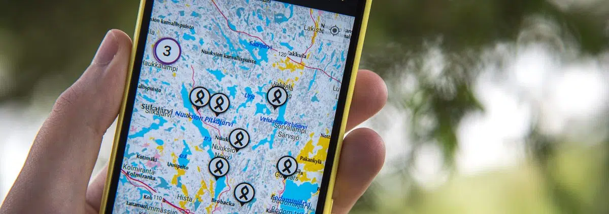 Retkipaikan mobiilisovelluksen kartalla on aina helppo löytää esimerkiksi itseä lähinnä olevat kohteet.