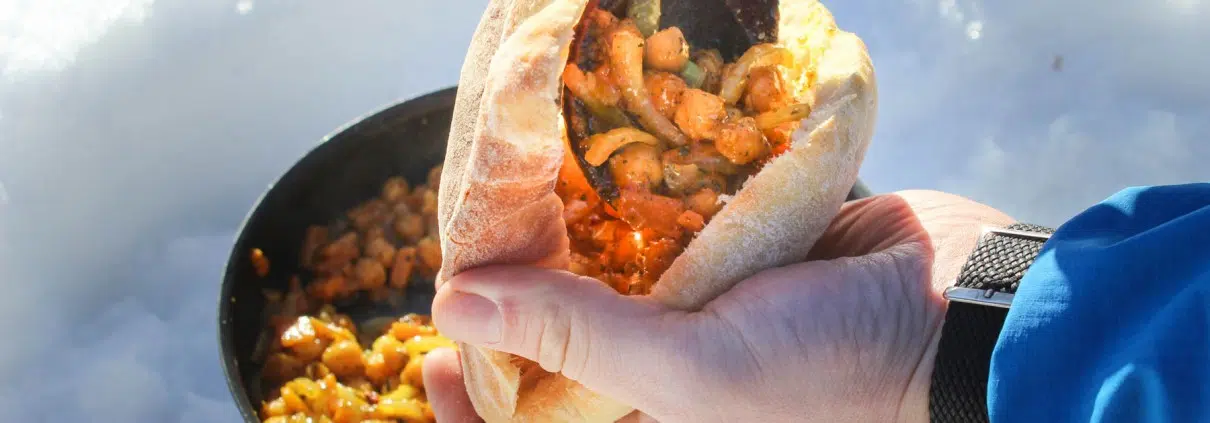 Yksinkertainen retkiherkku syntyy, kun nappaa mukaan pitaleipiä ja paistaa niihin mehevän täytteen ulkoilun lomassa joko tulilla tai keittimen pannulla. Pitaleivät voi paistaa itse vaikka edellisenä päivänä, tai ne voi ostaa valmiina kaupasta. Täyteainekset voi laittaa kotona valmiiksi marinoitumaan pakasterasiaan tai minigrippiin.