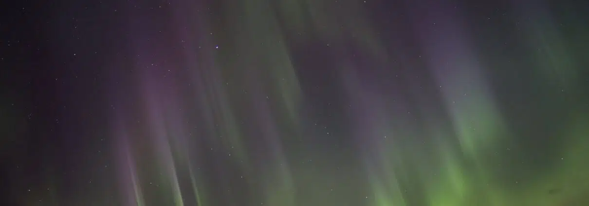 Revontulissa voi nähdä runsaasti värejä. Eri värit aiheutuvat ilmakehän eri molekyyleistä. Kuva: Sini Malminiemi