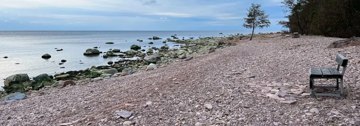 Junnilan edustalla ranta-alue aukeaa yhä laajempana, ja askel uppoa hiekan ja pienten kivien sekaan. Takarannan alue on suosittu käyntikohde niin aurinkoisena kesäpäivänä kuin syysmyrskyllä tai auringonlaskun aikaan. Avara kiviranta jatkuu Lontoon huvilan edustalle asti. Sinne tänne on aseteltu keinuja ja penkkejä, ja istahdan hetkeksi yhdelle lepuuttamaan jalkojani. Vasemmalla mantereen puolella siintävät Mäntyluodon satama-alue ja Kallon majakkasaari.