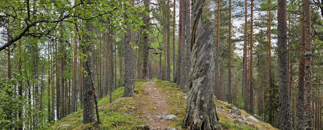 Ritojärven kierto Lieksassa: kelopuita ja kärryvajoja.
