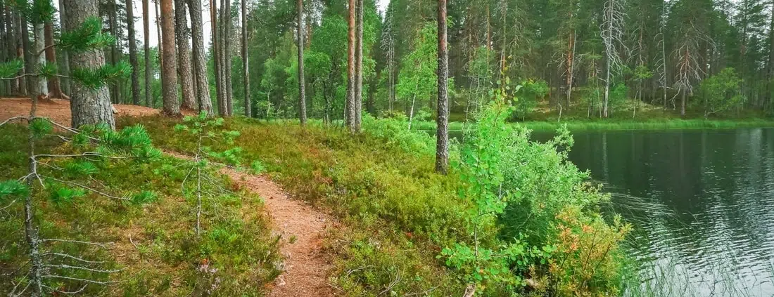 Rokuan kansallispuistossa esteetön reitti johdattaa erämaisen Pitkäjärven rannalle