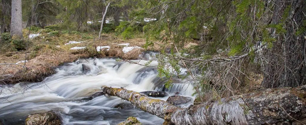 Heti ensimmäisenä metsä otti ihanasti syleilyynsä. Värit ja talven jälkeen heräävän maan tuoksut olivat parasta. Etäisesti kuulimme jostain kohinaa ja tyytyväisenä ajattelin, että taitaa köngäs näin kesän korvalla olla oikein voimissaan.
