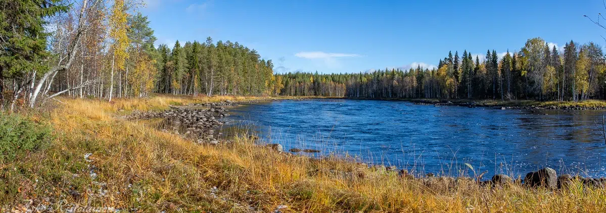 Tässä joen rannalla seistessä mietin, että vaikka rinkan kanssa kävely on ihan mukavaa, niin kyllä silti mieli teki kanootilla tuonne vesille. Olisi se vaan niin upeaa antaa virran viedä ja samalla katsella rannan keltaisia koivuja. Meloja on aina meloja.