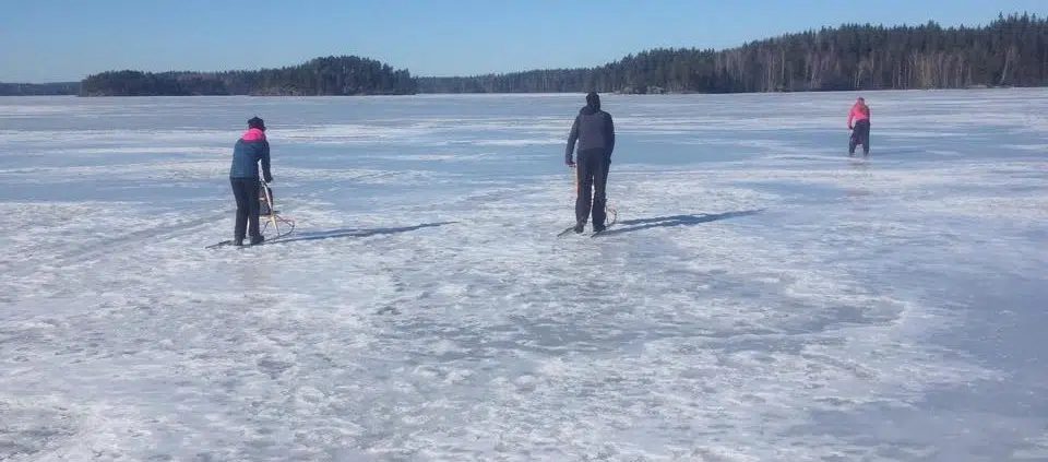 Saarihyppely potkukelkoilla Suonteella Joutsassa