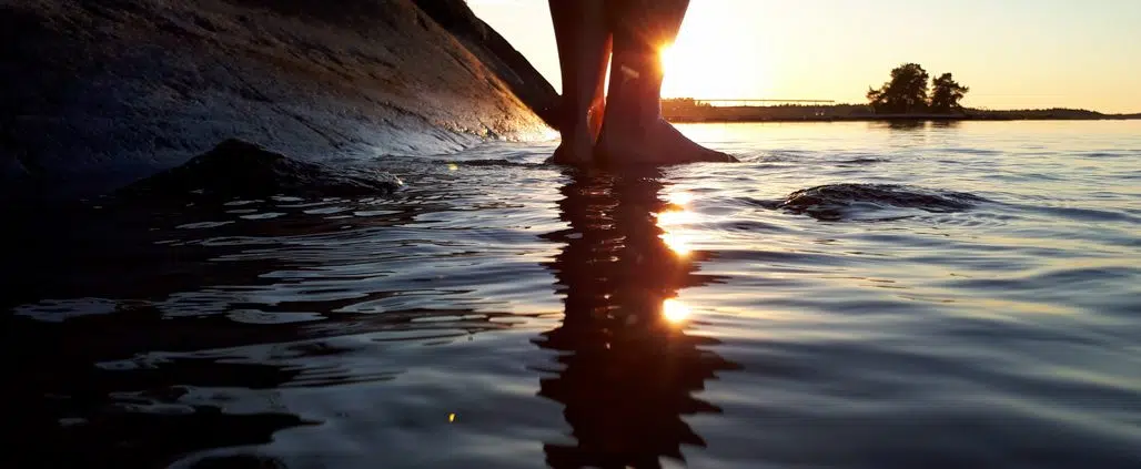 Nauvossa sanomme hetkeksi hyvästit satulalle. Kesä on vahvasti paikalla, kun parkkeeraamme terassille. Uimarannan kylki silokallioineen on mitä mainioin leiripaikka. Saamme nauttia riippumatoissa pötkötellen sekä auringonlaskun että nousun.