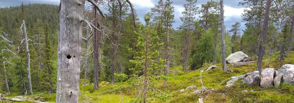 Metsä-Lapissa huomaa, kuinka tarkka yksityisen (tuotantoon käytettävän) metsän ja jollain tapaa rauhoitetun metsän raja voi olla. Siinä lähtöpaikalla ei vielä ollut mitään merkkejä siitä, että reitti tarjoaisi jotain miellyttävää aisteilleni, koska metsän pohja oli ojitettu ja puusto oli noin parikymmentä vuotta vanhaa leimikkoa. Noin puoli kilometriä mentiin melko tiheässä talousmetsässä, kunnes maisema alkoi näyttää oikealta metsältä.