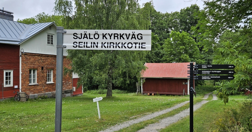 Ja hetken päästä ollaan taas lähellä sairaalarakennuksia. Kävelyä oli tässä vaiheessa takana noin neljä ja puoli kilometriä. Seuraavaksi kurvataan kohti Seilin kirkkoa ja sieltä alkavaa Kirkkoniemen polkua.