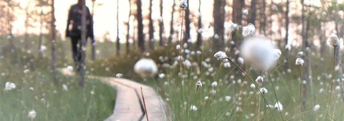 Kymenlaaksossa, Kotkan pohjoispuolella sijaitseva Valkmusan kansallispuisto on luontomme herkkä helmi, joka pääsee oikeuksiinsa kesäyön eteerisessä ajattomudessa. Suon maaginen tunnelma ja luonteenomainen tavoittamattomuus korostuvat polveilevalla Läntisen keitaan pitkospuureitillä, joka on kansallispuiston ainoa polku suoraan suon syliin.