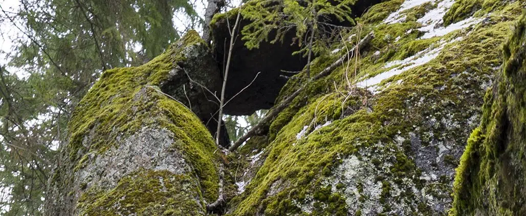 Näky poikkeaa valtavasti lohkareita ympäröivästä metsästä. Ei ole ihme, että muinaiset suomalaiset päättelivät jättiläisten heittäneen siirtolohkareet metsiin.