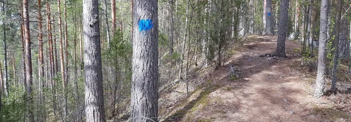 Reitti kulkee harjun laella pari sataa metriä. Reitti on merkitty todella selvästi sinisillä maalimerkeillä.