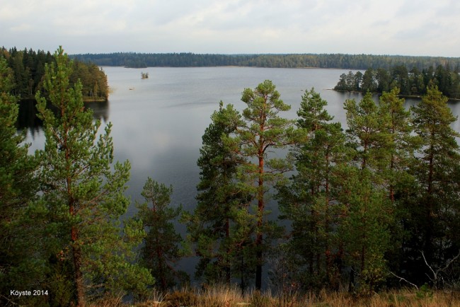 Syksyn viileän kosteana aamupäivänä usva ei ollut vielä kokonaan haihtunut järven rannoilta, se tuo oman tunnelmansa tähän vuodenaikaan. Meikon rantojen lähistöltä löytyi paikoin isojakin korkeuseroja ja hienot maisemat järvelle päin. Tasaisen polun sijaan pääsi kiipeilemään kallioita ylös ja alas. Onnekseni mukana olivat tukevat kengät sateen liukastamille kallioille.