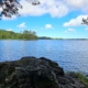 Alueella on siis väljien huussien lisäksi opastuskatos, jossa on Geopark-tietoutta, evästelykatos hormillisella tulipaikalla johon mahtuu melkein bussillinen ihmisiä, ja vielä näiden lisäksi kolmas suuri ja avara katos. Rannalla on myös kaksi pukukoppia sekä erillinen avotulipaikka. Ranta itsessään on ihanan pehmeää hiekkaa, joka jatkuu matalahkona ja kirkkaana useamman kymmenen metriä. Vesi syvenee pikkuhiljaa niin, että arvioisin tämän olevan erinomainen paikka pienille uimareille tai muutoin rantavedessä plutaajille. Aivan mahtavan rentouttava ranta!