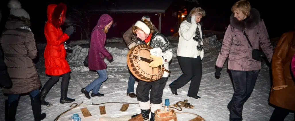 Nuotiotarinointi kuului myös tällä kertaa lumikenkäretkeläisten päivään. Vaellus päättyi Pieniniemelle tulistelun ja tarinoiden merkeissä. Jokainen ryhmäläinen sai intuitiivisesti valita riimukortin, ja liekkien loimutessa ihmispiirin keskellä Leinonen kertoi, mitä kukin riimu merkitsi.