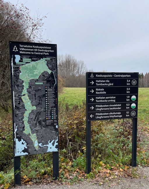 Paluumatkalla bussissa minut valtasi todella hyvä mieli. Ajatella, että pääkaupungissamme, erinomaisten kulkuyhteyksien varrella on näin upea metsäalue monipuolisine, hyvin hoidettuine reitteineen ja selkeine opastustauluineen ja viittoineen. Urheiluharrastusten lisäksi alue on kuin luotu rauhallisille päiväretkille niin pääkaupunkiseudun asukkaille kuin kauempaakin tuleville, siitä lämmin kiitos Helsingin kaupungin päättäjille ja työntekijöille! Erämaisempiin retkeilykohteisiin tottuneelle täältä puuttuu oikeastaan vain tulenteko- ja telttailumahdollisuus, mutta Helsingin Keskuspuiston huikean käyttöpaineen takia tämä on täysin ymmärrettävää.