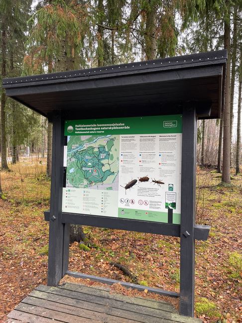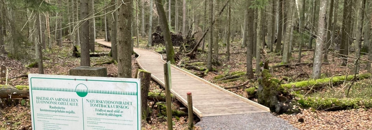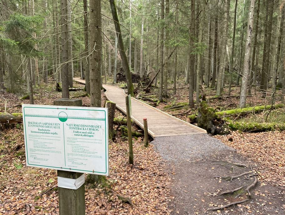 En ehtinyt kävellä kuin pari minuuttia, kun ulkoilutien varrella komeili seuraava opastustaulu. Se kertoi siitä, että olin tullut Haltialanmetsän luonnonsuojelualueen rajalle. Helsingin kaupunki on viime vuosina perustanut lukuisia uusia luonnonsuojelualueita. Vuonna 2020 perustettu Haltialanmetsä on metsäisistä luonnonsuojelualueista suurin, 137 hehtaaria. Koillisessa ja luoteessa alue rajautuu suoraan paljon vanhempiin Haltialan aarnialue- ja Pitkäkosken rinnelehdot -nimisiin luonnonsuojelualueisiin muodostaen näin komean, lähes parinsadan hehtaarin kokonaisuuden.