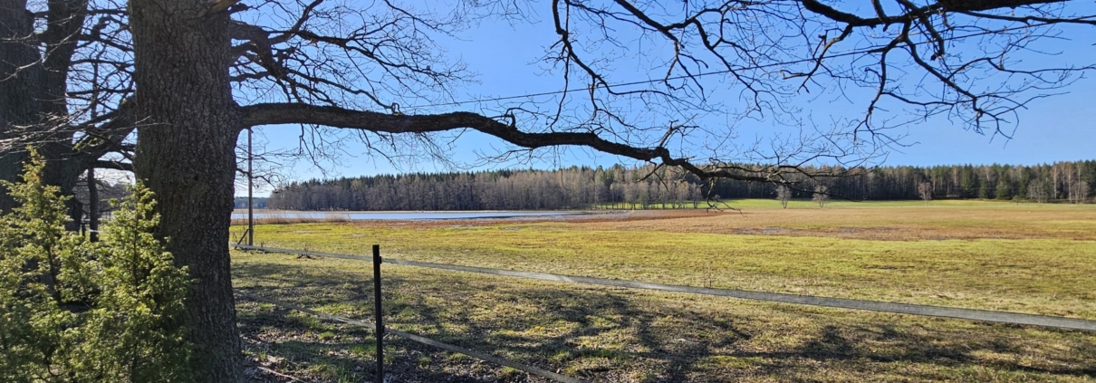 Torpvikenin maisemaa oli mukava katsella. Ja kiikaroida. Rannalla kahlasi ainakin punajalka- ja valkovikloja. Huhtikuun lopun äänimaisemaan kuului myös paljon lokkien ja tiirojen ääniä. Vietin niityn laidalla hyvän tovin.