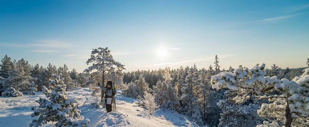 Saimme vinkin mennä Saloon, Teijon kansallispuistoon maisemia valokuvailemaan. Tämä sopi meille hyvin, koska olimme muutenkin miettineet sinne pienen talvipatikointireissun tekemistä. Olimme sen verran rohkeita, että otimme suksetkin mukaan. Hankalaa maastoa, mutta pääsimme hiukan sauvakävelemään sukset jalassa.