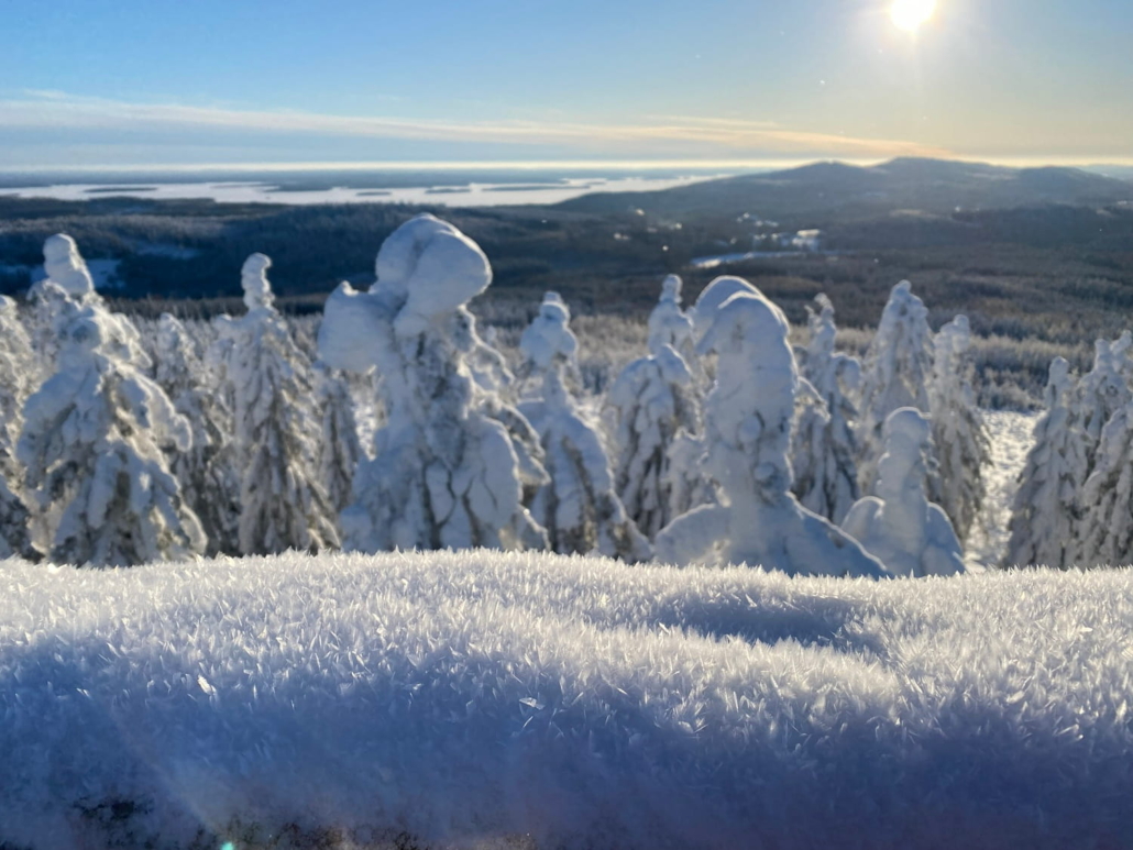 – Minulla ei ollut lämpömittaria mukana, mutta pakkanen taisi painua noin -10 asteeseen. Kylällä oli ollut -15, mutta usein vaarojen laella on lämpimämpää, koska kirkkaalla säällä kylmä ilma painuu laaksoihin.