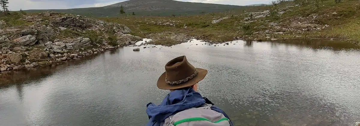 Jokaisesta päivästä voisi kirjoittaa pitkän, ylistävän tarinansa, mutta en nyt ala kirjoittaa täydellistä tarinaa joka päivästä. Jokainen päivä oli erilaisensa, kävimme Ahopäillä, jossa saimme seurata poroperheen käyskentelyä tunturilla. Sieltäkin löytyi monia mielenkiintoisia kuruja ja pieniä lampia. Sivakkaojan laavulle kävelimme vanhaa Ruijanpolkua pitkin. Paljon historiaa liittyy tähänkin polkuun, kannattaa tutustua aiheeseen, jos menee sinne polulle ja muutenkin. Paljon kuljimme omia reittejä kartan ja kompassin avulla, poropolkuja seuraillen. Monta kertaa tuli mieleen Kullervo Kemppisen kirja ”Poropolku kutsuu”. Vaikka ei olisikaan lukuihmisiä, niin suosittelen kyllä lukemaan tämän legendaarisen tunturivaeltajan kirjan.