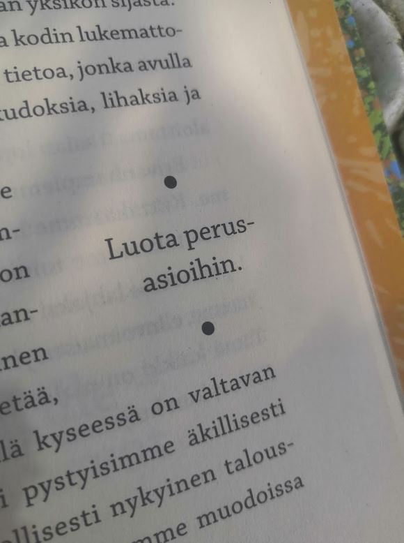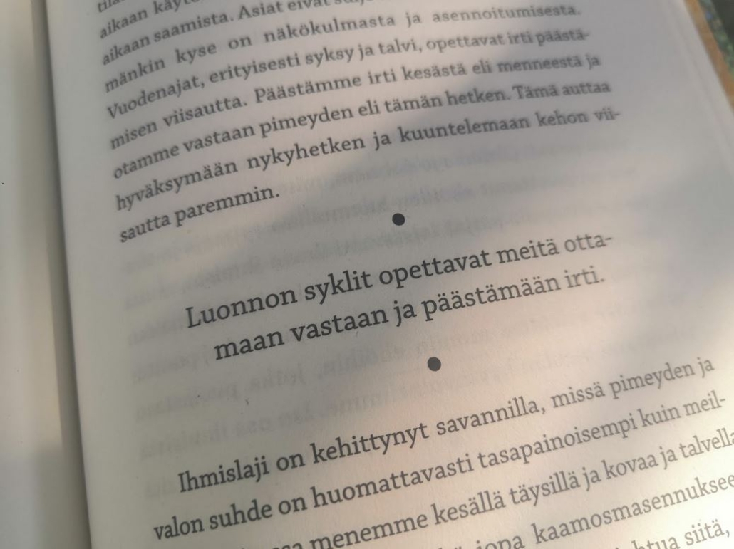 Suosittelen kyseistä kirjaa. Ota se mukaan vaikkapa riippumattoon kuulaaseen syysilmaan tai tulevan talven takkatulen ääreen. Lue se läpi. Pohdi. Lue uudelleen ja oivalla.