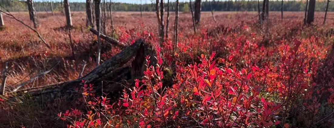 On Kainuun ruskahuippu, kun lokakuussa 2025 lähden tekemään kunnolla tuttavuutta kainuulaisten soiden kanssa Teerisuon-Lososuon alueelle. Olen liikkeellä etätyöpäivän jälkeen. Iltapäivä on lähes pilvetön, ja heti autolta lähtiessä tunnen, että alkuillasta on tulossa kirpakka lämpötilan hiipiessä lähelle nollaa.