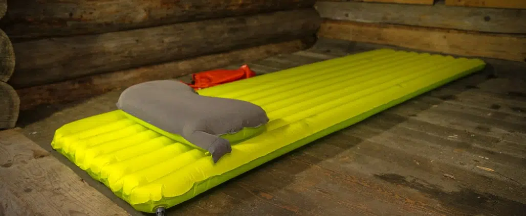 Vaude Norrsken -makuualusta on pakattuna vain 27 x 15 senttimetrin käärö, joten se kulkee helposti mukana. Jonkin verran pienempi on Norrsken Pump Pillow II, joka nimensä mukaisesti toimii tyynynä ja pumppuna.