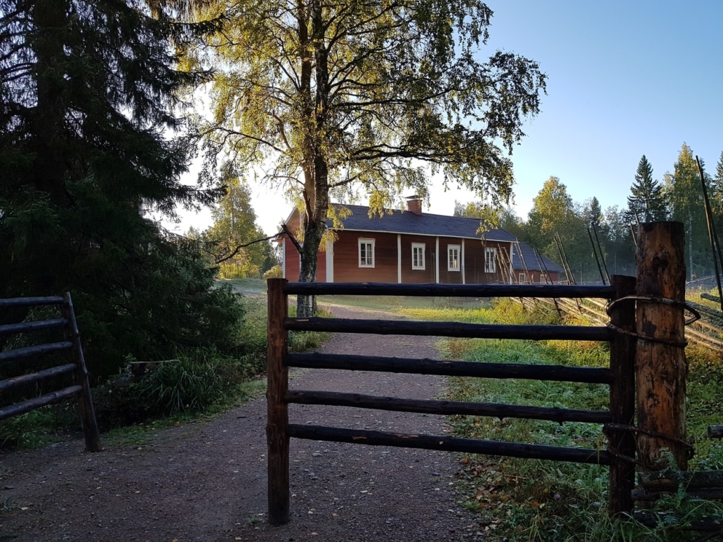 Syyskuinen sunnuntaiaamu, kello oli noin kahdeksan aamulla. Ulkona oli noin 5-6 astetta lämmintä ja aurinko nousi taivaalle. Olin viettänyt yön Seitsemisen luontokeskuksen majoitustiloissa ja ajelin sieltä 7 kilometriä Koveron perinnetilalle. Parkkipaikka oli tyhjä. Kuvasin kartat ja kyltit parkkipaikan kieppeillä.