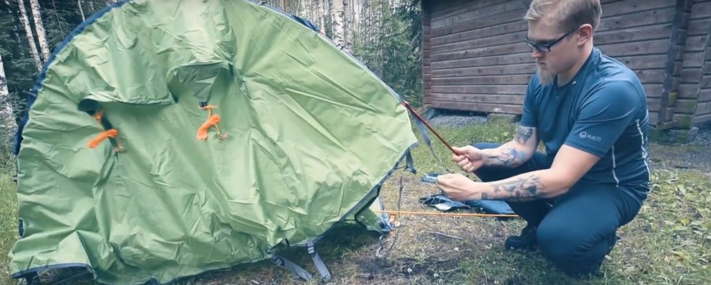 Videolla Retkipaikka- ja Rinkkaputki-sivustoilta tuttu Heikki Sulander näyttää, kuinka tunneliteltta pystytetään menestyksekkäästi – ja vieläpä niin, ettei koko komeus karkaisi kovallakaan puhurilla tuulen matkaan.