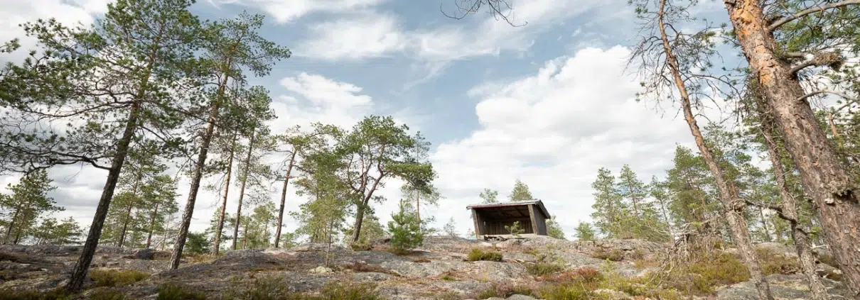 Pian polku jakautui kahteen suuntaan. Oikealle kääntyvä vie Pööskallion laavulle. Päätin tutustua laavuun ennen näköaloja.