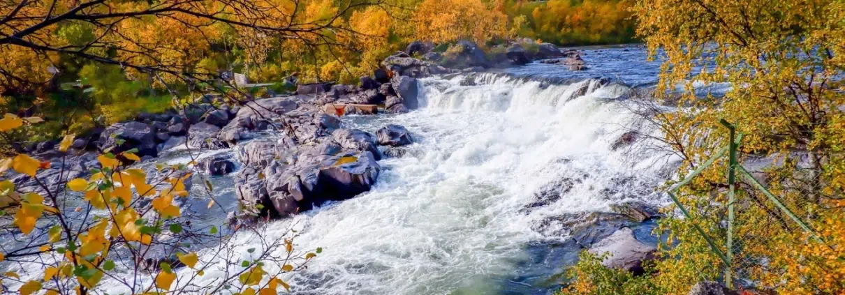 Turkoosin veden pauhua Neidenissä: autotie ylittää upean kosken vain kivenheiton päässä Suomen rajalta