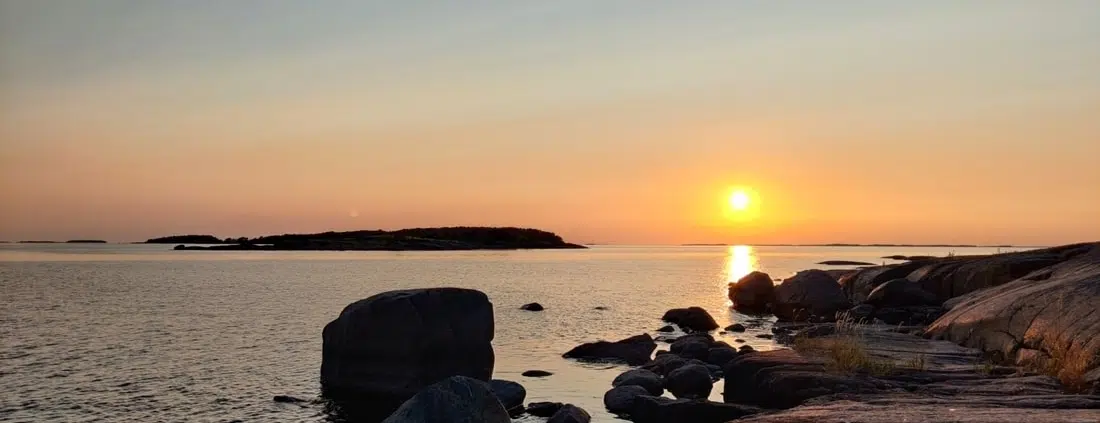 Parituntinen risteily Kotkasta Ulko-Tammioon on tyynessä ja helteisessä kesäsäässä aivan uskomattoman upea. Ja mikä kohahdus täpötäydellä vuoroveneen kannella käykään, kun joku huomaan hylkeen pään pilkistävän tyynestä Itämerestä. Ehdimme nähdä kunnon vilahduksen merikoirasta ennen kuin vene menee menojaan ja hylje suuntaa taas pinnan alle. Hyvä ennusmerkki tulevalle retkivuorokaudelle!