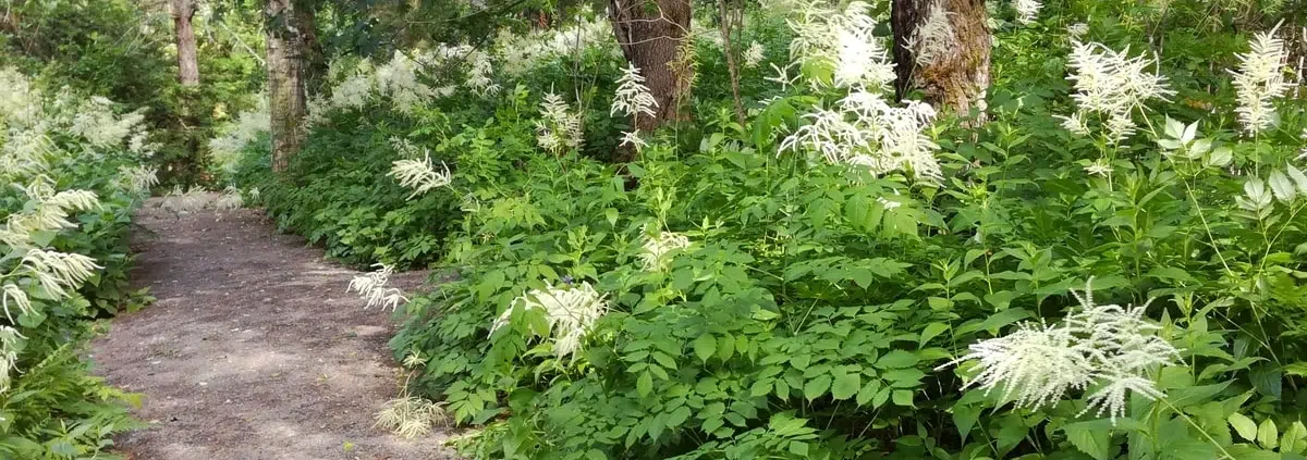 Leveä puistokäytävä johdattaa heti valintojen eteen: aloittaako suojaansa kutsuvasta varjoisasta puuosastosta, vai sittenkin aurinkoisesta ja avarasta kukkapuistosta?