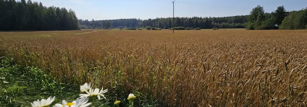 Reitti saapuu pellon laitaan. Sadonkorjuu taisi olla menossa muutaman sadan metrin päässä.