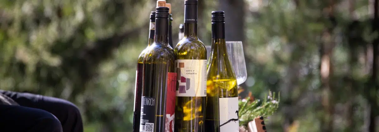 Kun olemme viettäneet noin vartin luonnossa tunnustellen sen eri ulottuvuuksia, aistit ovat virittäytyneet luonnon tasolle, ja vuorossa seuraavana ovat makuelämykset. Nyt viinit pääsevät esille.