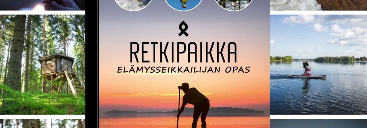 Retkipaikka-kirjoille uskolliseen tyyliin elämykset on esitelty omakohtaisten kokemusten kautta, ja elämysesittelyjen taustalla on jälleen koko joukko Retkipaikan tiimiläisiä. Miltähän tuntuisi esimerkiksi surffata koskenharjalla, lähteä eväsretkelle miniaasin kanssa tai osallistua viinitastingiin metsän siimeksessä?