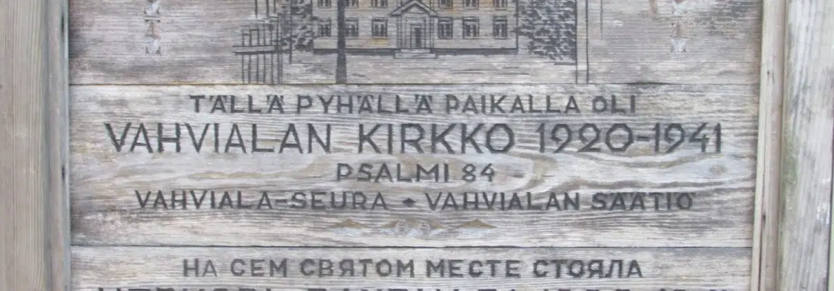 Hautausmaata vastapäätä lähtee kapea metsätie, joka johtaa korkealle mäelle, missä sijaitsi vuosina 1920–1941 Vahvialan kirkko. Vai olisiko parempi sanoa, että upea terijokilainen huvila, joka siirrettiin tänne seurakunnan evlut-kirkoksi vuonna 1920, kun paikallinen seurakunta aloitti toimintansa.