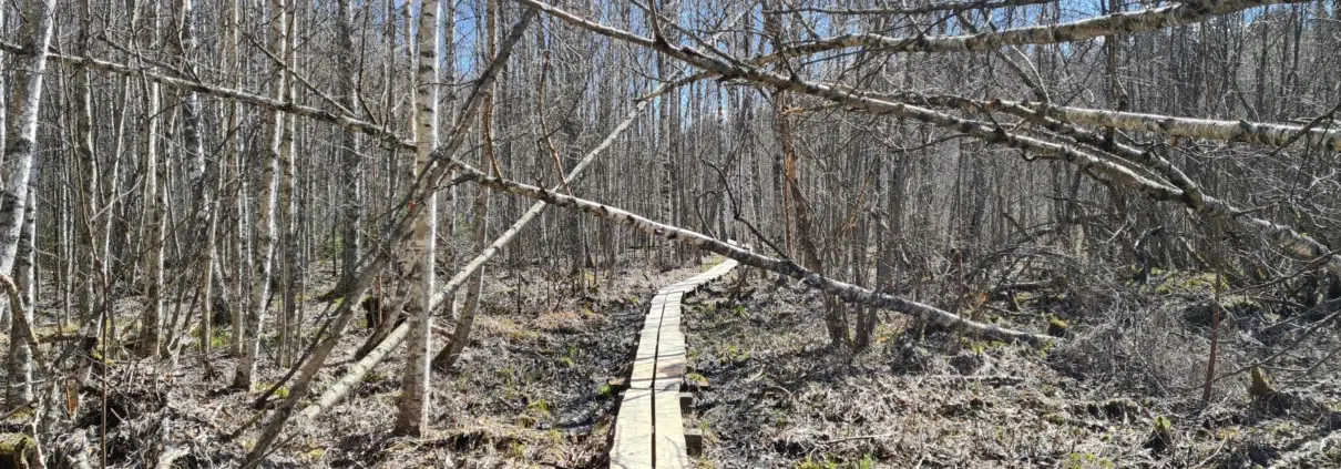 Reitti oli alkumatkan osalta ainakin aurinkoisena kevätpäivänä todella miellyttävä. Pitkokset olivat vakuuttavan hyvät ja keväistä auringonvaloa riitti koivunrunkojen lomasta ihan pitkoksille asti.