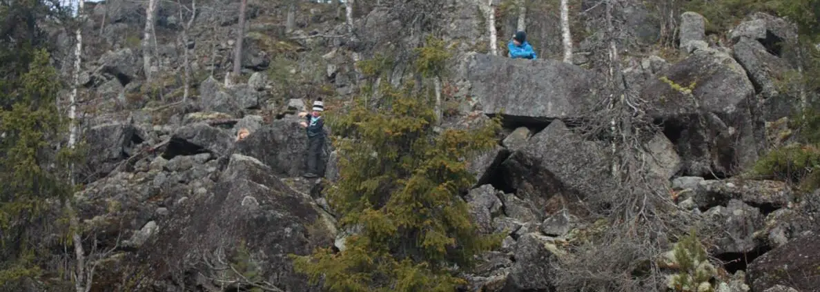 Kurun pohjan laavupaikan ympärillä oli molemmin puolin jääkauden muovaamaa kivikkoa. Niin lapset kuin aikuisetkin intoutuivat pitkäksi aikaa kiipeämään ylös asti.