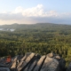 Taukopaikalta etelään kuljetaan sitten polkuja pitkin. Aluksi noustaan kalliomaisemiin. Punaiset timanttikuviot johdattavat reittiä kohti Telegrafbergetiä.