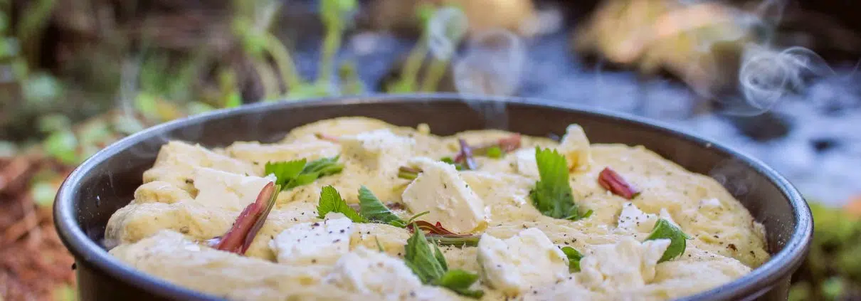 Tein taikinaa reilusti ja annoin sen kohota sillä aikaa, kun pakkasin muita tarvittavia tavaroita rinkkaan. Juuri ennen lähtöä laitoin puolet taikinasta muovipussissa mukaan. En tarvinnut paljoa, koska olin yksin syömässä.