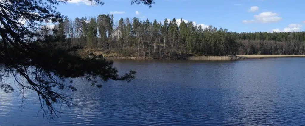 Niinpä menimme portista sisään ja marssimme vielä 300 metriä sinne järven rantaan, missä tosiaan on aikamoisen nätti mäntypuiden metsikkö, jyrkkä rantatörmä, sekä hienot näkymät Kirkkonummen (pinta-alaltaan) toiseksi suurimmalle järvelle. Eikä ollut yhtään hullumpaa taaskaan istua siellä ja nauttia loput kahvit, sekä eväsherkut. Mukavaa oli myös jutustella hyvin perusteellisesti paikallisasukkaiksi osoittautuneiden retkikumppaneidemme kanssa! Useampaankin asiaan ehdin jo saada uusia näkökulmia tuon puolen tunnin kahvihetkemme aikana.