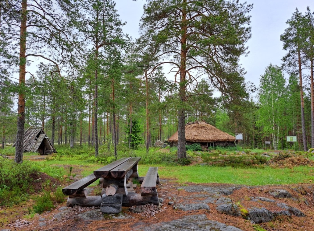 Alkumatka on leveää ja tasapohjaista askellettavaa ja johtaa aukiolle, josta löytyy malli kivi- ja pronssikauden talosta. Aukiolla on myös susia ja karhuja, onneksi vain puusta veistettyinä. Evästelypaikkakin löytyy.